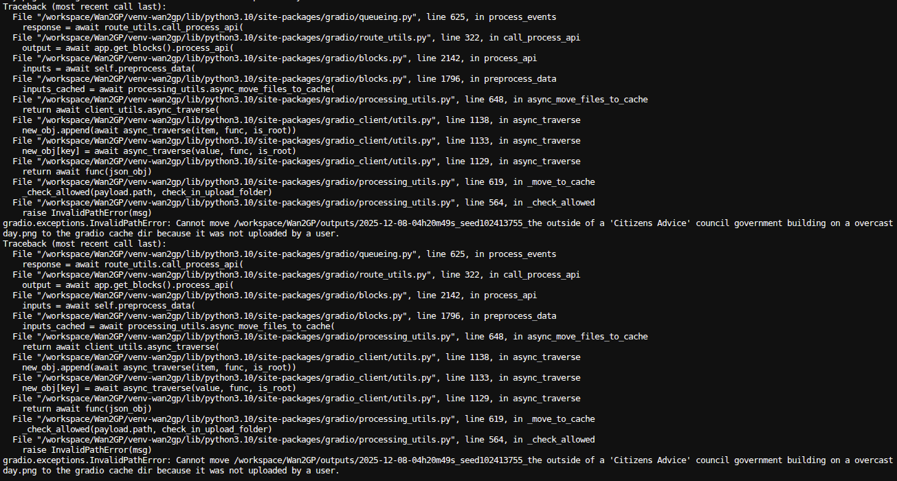 gradio.exceptions.InvalidPathError: Cannot move /workspace/Wan2GP/outputs/... to the gradio cache dir because it was not uploaded by a user.
